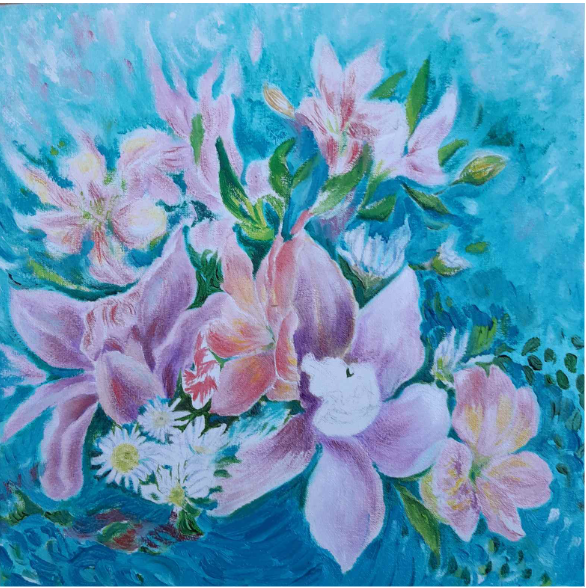 The selected flower paintings were born at different timepoints in the past decade, but all from the feelings of beauty and inspiration to life. Although seeing and feeling beauty can be possible in solitude, the need to give, transform emotions to art and share it with others are given from above.